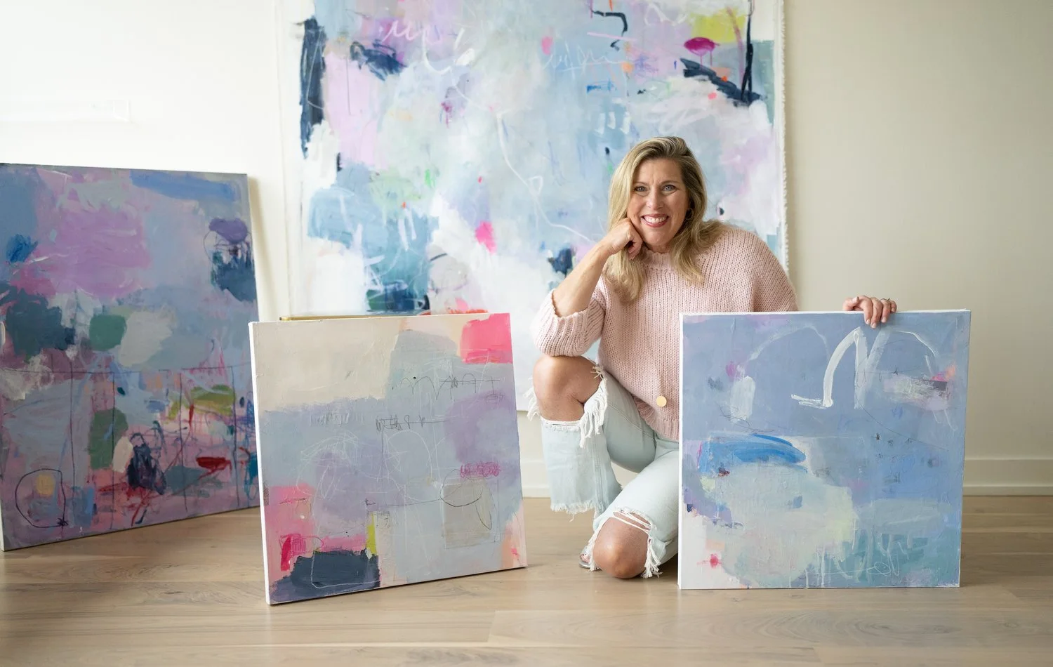 Through the years, Laurie has honed her signature painting style. She studied interior design at Indiana University and expanded her learning at the Harrington College of Design. Chief among her influences is Nicholas Wilton, whom she cites as having the greatest impact on her creative process. He taught her to paint from her soul, not from a picture, to trust her intuition, and let the expression take its own course. In late 2019, as an extension of his Creative Visionary Path Program (CVP) in Sayulita, Mexico, she met and worked alongside Wilton and his coaches. Since this life-changing experience, her work has become a true reflection of herself as the artist.